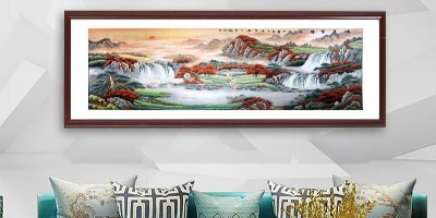 山水刺绣画挂客厅,寓意好事连连