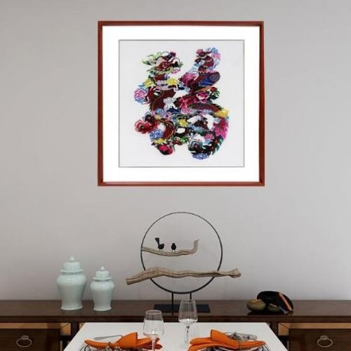 餐厅装饰画挂手工刺绣龙凤福,如意瑞庆常在家