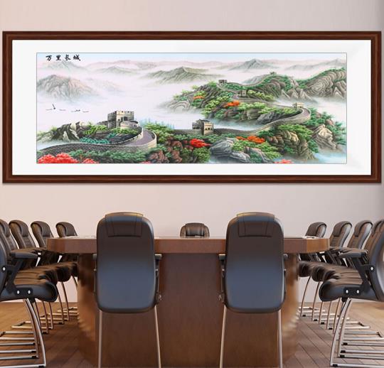 推荐办公室装饰画一:手工刺绣金色万里长城图