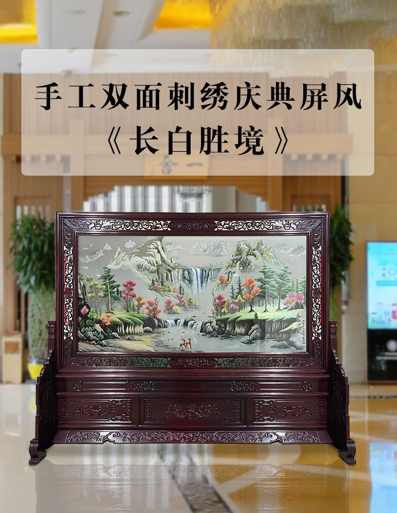 开封汴绣 双面绣落地大屏风 办公楼大厅屏风隔断中式